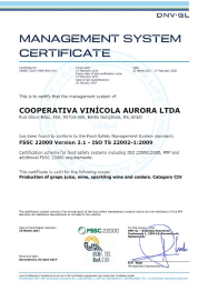 A Aurora conquista a certificação Food Safety System Certification de segurança alimentar.