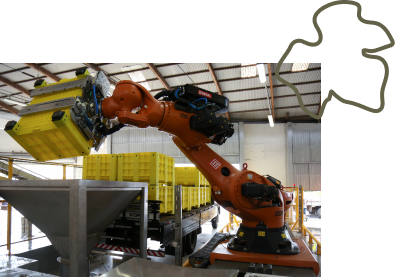 Usando a tecnologia a nosso favor, neste ano ocorre a modernização do recebimento de uvas, com descarregamento por meio de robôs.