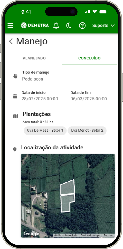 Sistema de monitoramento voltado à detecção e resposta precoce a pragas, doenças e outras ameaças à viticultura. Gera alertas que orientam aplicações mais assertivas dos agentes de proteção de cultivo, contribuindo para a redução de perdas, custos e impactos ambientais.