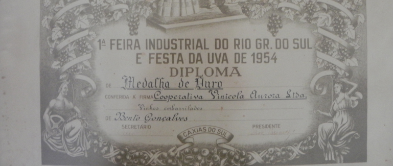 Em 1931, as gêmeas Aurora e Alba Cao, idênticas em tudo – no sorriso, no corpo, no rosto – todos os dias levavam numa cestinha o almoço do pai pedreiro, Luigi Cao, que construía “um pavilhão para a uva”, na cidade de Bento Gonçalves/RS. Era o depósito da futura Cooperativa, onde todos trabalhavam em mutirão. Os colonos se afeiçoaram às meninas e a elas lhes serviram de inspiração no momento em que deviam dar uma denominação à associação. “Alba ou Aurora?”, perguntaram-se eles entre si, e acabaram optando por Aurora.